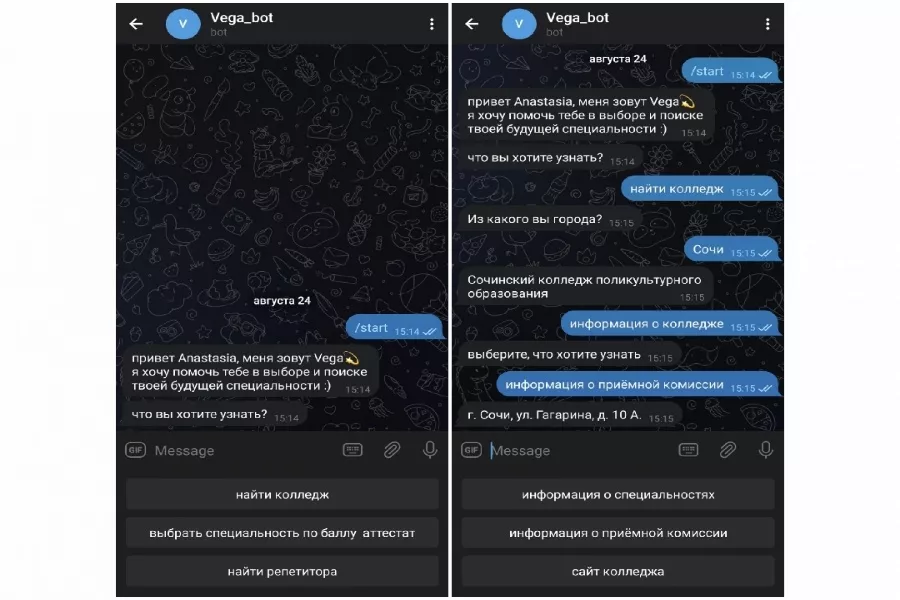 Краснодарские разработчики создали Telegram-бот «Vega», который помогает абитуриентам и их родителям быстро найти подходящее учебное заведение.