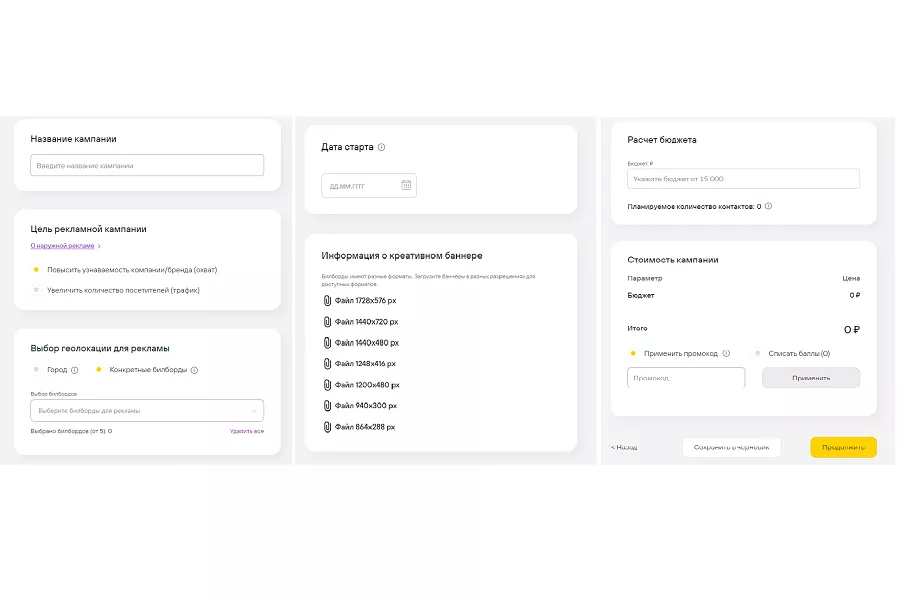 Минимальный бюджет кампании – 15 тыс. рублей с НДС. Чем больше бюджет, тем продолжительнее рекламная кампания, кроме того, цена варьируется исходя из города размещения кампании. Для запуска необходимо заполнить заявку на платформе билайн.ПРОдвижение, после чего кампания проходит модерацию. Заказчик может самостоятельно подготовить креатив с учетом технических требований, рекламные материалы, загруженные клиентом, должны соответствовать рекламному законодательству. По итогам кампании предоставляется отчет с ключевыми показателями: это даты размещения, количество контактов, стоимость кампании.