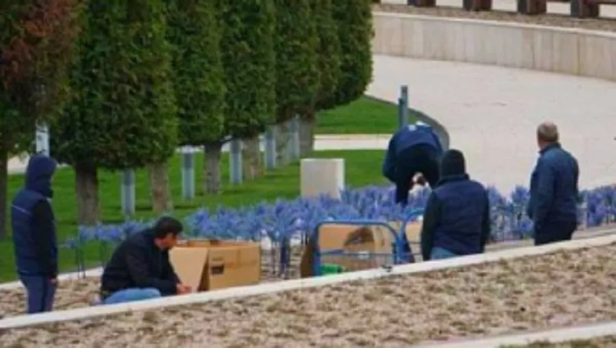 Светящийся шалфей начали монтировать в парке «Краснодар». Искусственные растения «высаживают» на клумбах на месте живых аналогов третий год подряд.