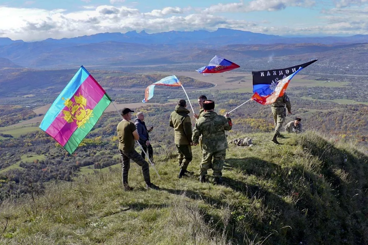Они поднялись на гору Шахан-1, на высоту 1156 метров, где установили флаги России, Краснодарского края, ДНР и ЛНР.
