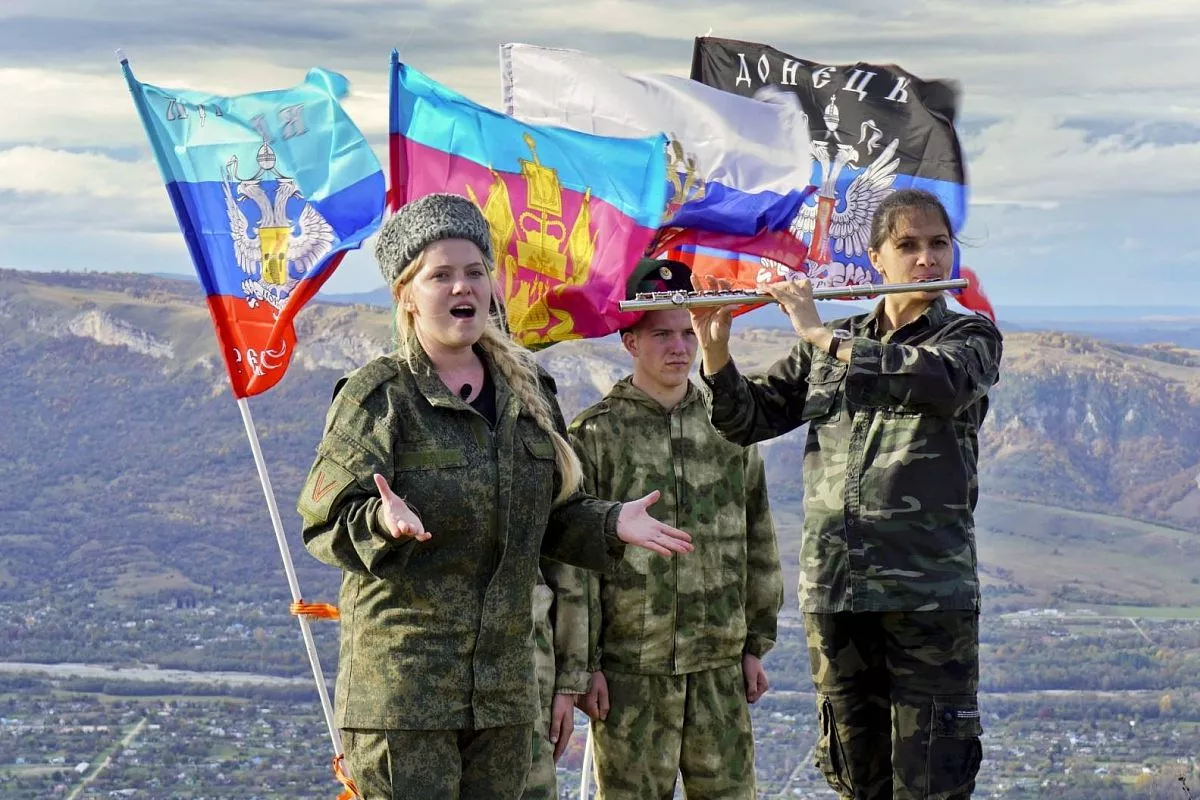Представители Русского географического общества, патриотических клубов и педагоги установили на хребте Шахан в Мостовском районе флаги России, ДНР и ЛНР.