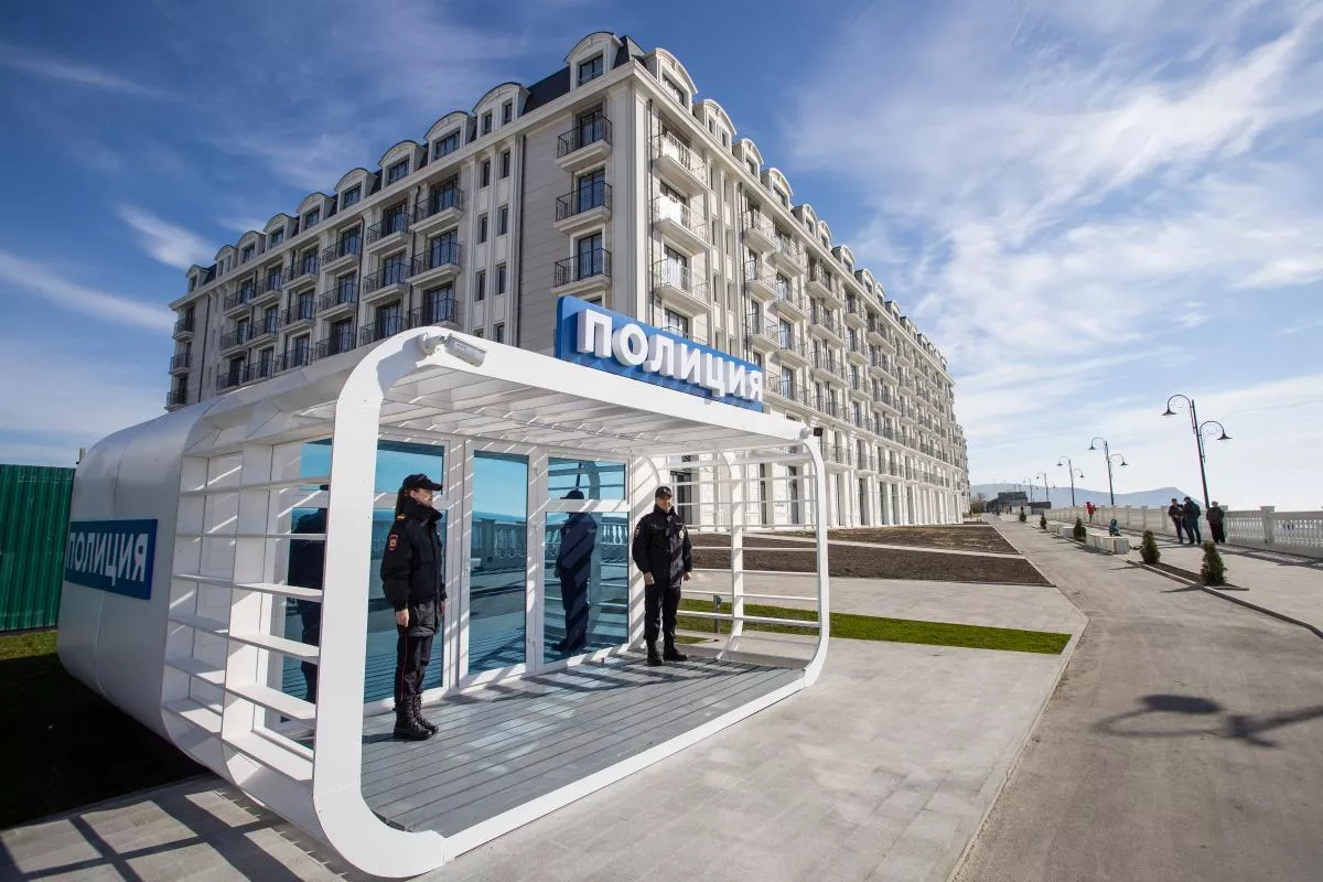 На набережной Анапы - неподалеку от Ореховой рощи - установили современный пост полиции. Он стал седьмым на курорте. Три находятся в центре города, столько же - на пляжных территориях.