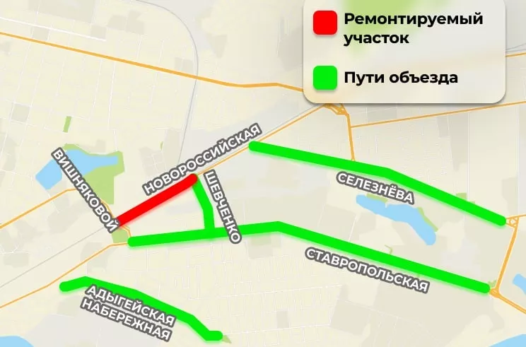 Автомобилисты предлагают использовать альтернативные дороги по улицам Ставропольской, Шевченко, Селезнева и Адыгейской Набережной, сообщает пресс-служба городской администрации.