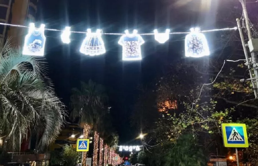 Необычные новогодние гирлянды заметили накануне жители и гости Сочи над дорогой по проспекту Пушкина. Выглядят они как сохнущее белье. Юбки, футболки, носки и трусы светятся в ночное время. Снимки праздничной иллюминации опубликовали местные паблики. Большинство подписчиков юмор оценили.