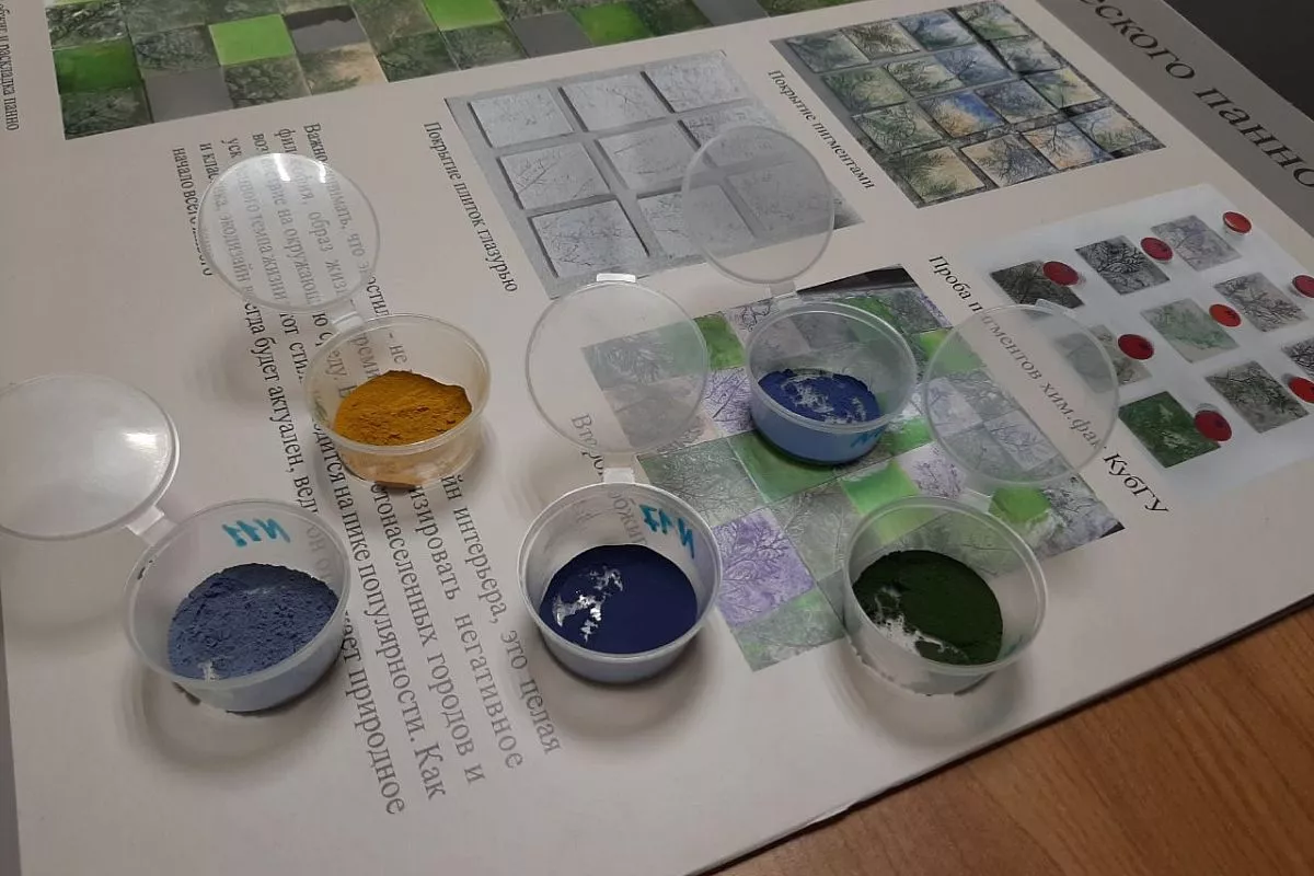 Местным нанотехнологам удалось создать целую палитру зеленых оттенков керамических пигментов, очень близких к окрасу листвы различных растений нашего края. Для их создания использовался как известный ранее оксид хрома, так и новые материалы на основе цинковых шпинелей, и метод управления формой и размером наночастиц.