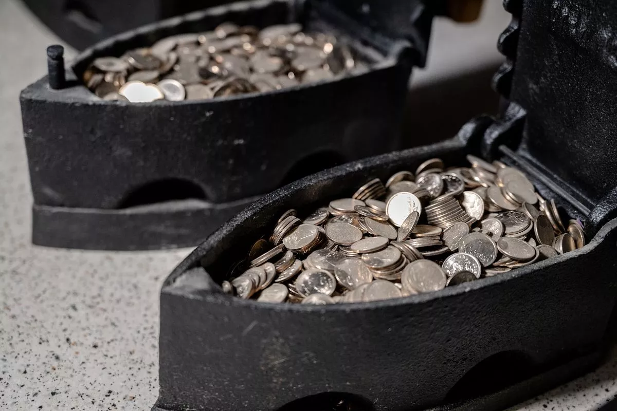 И в доказательство своих слов Александр открывает крышку одного из утюгов: внутри большая горсть монеток.