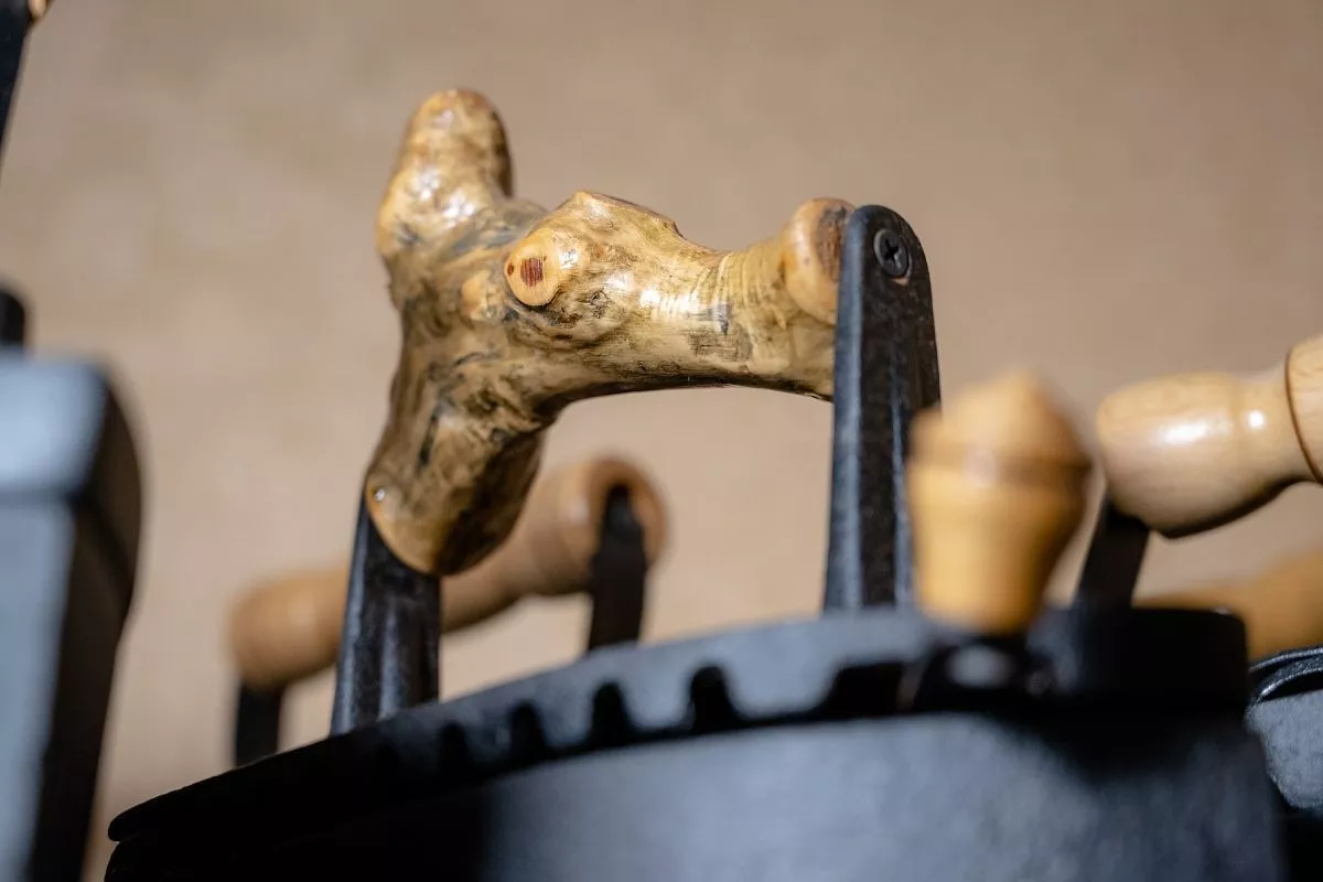 Например, есть в коллекции утюг, который влюбленный ухажер подарил своей даме сердца. Есть все основания полагать, что он был изготовлен в конце XIX века по заказу этого самого мужчины. Об этом свидетельствует защелка в виде сердечка. Утюг и сегодня готов к применению, надо лишь добавить внутрь горячих углей.