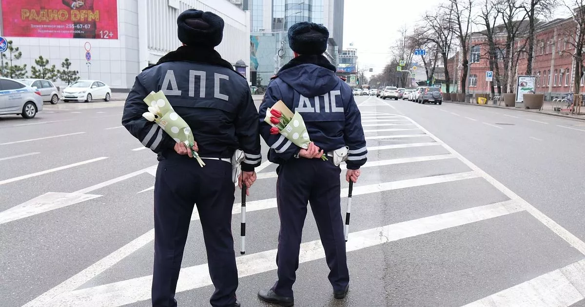 В краевом центре сегодня, 6 марта, сотрудники ГИБДД останавливали женщин-водителей, чтобы поздравить с наступающим праздником.