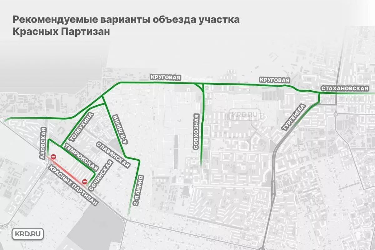 В администрации краевой столицы рассказали водителям, как можно объехать участок Красных Партизан, где идет строительство подземного перехода.