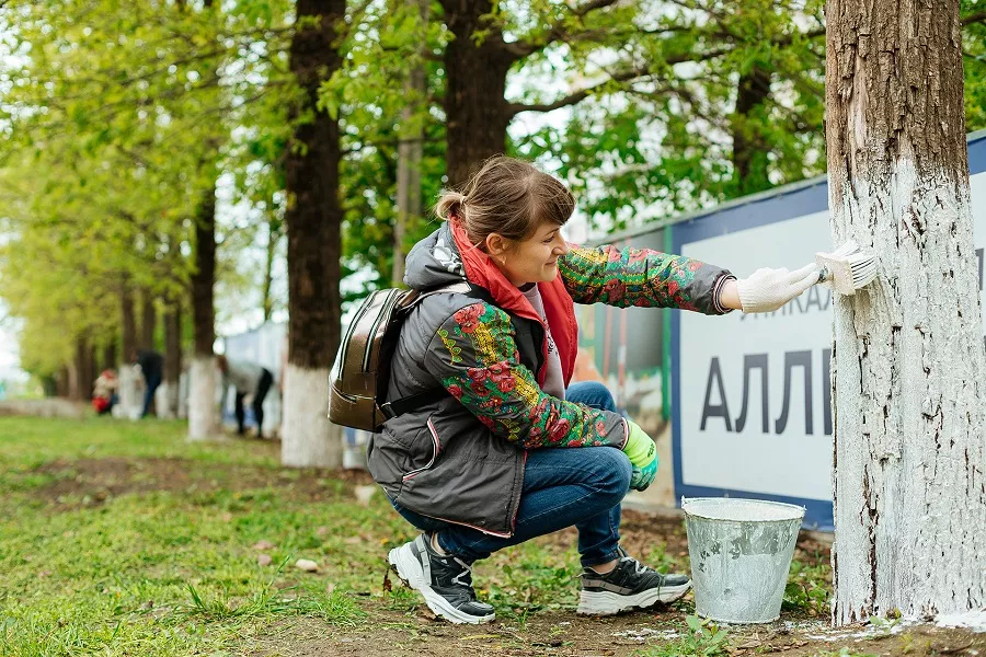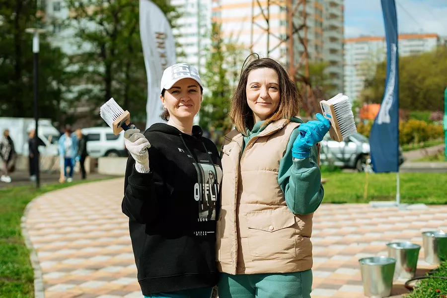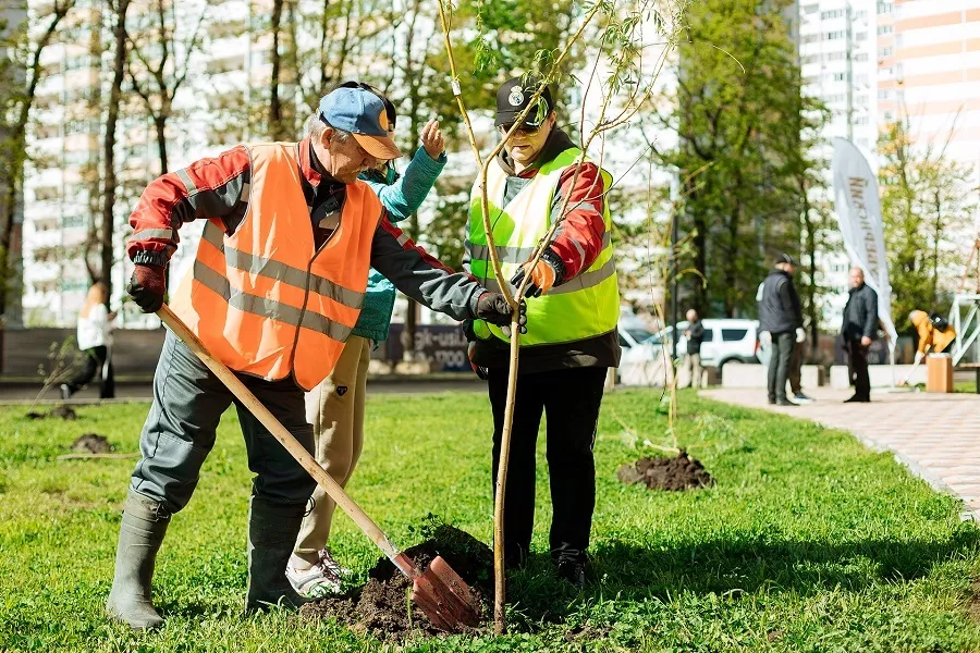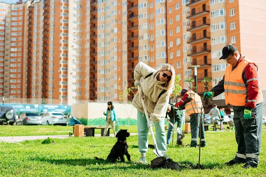 С самого утра в микрорайонах «Губернский» и «Достояние» царила атмосфера праздника. Жильцы вышли во дворы, чтобы принять участие в весенней уборке и высадить молодые деревья.