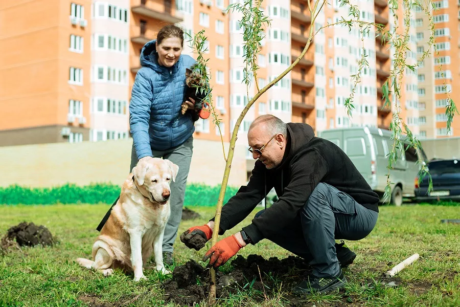 Комплексно благоустроенная территория с продуманным ландшафтом — одна из отличительных черт микрорайонов группы компаний «ЮгСтройИнвест». Когда подросшие саженцы наберут в высоту, жители смогут любоваться зеленью и отдыхать в тени ив, посаженными собственными руками во дворе дома.