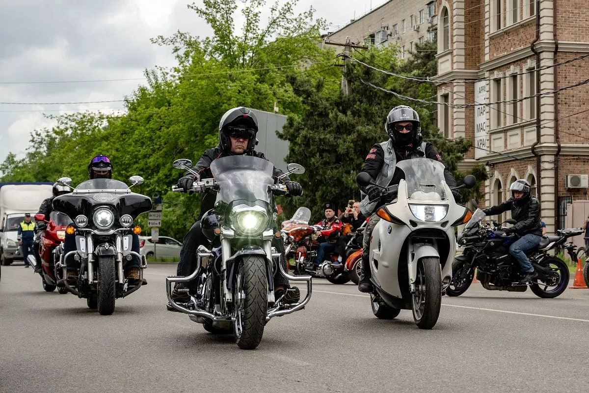 Патриотический мотомарш: «Ночные волки» проехали по улицам Краснодара