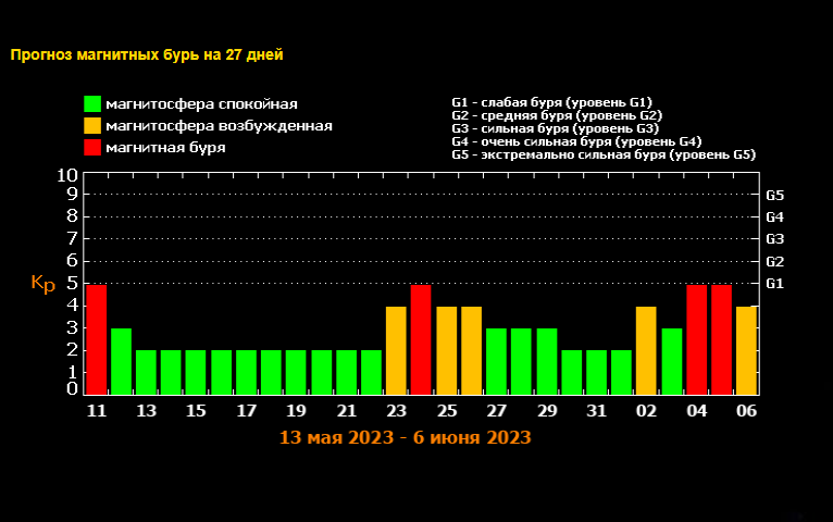 Магнитная буря уровня G1 ожидается 11 мая.