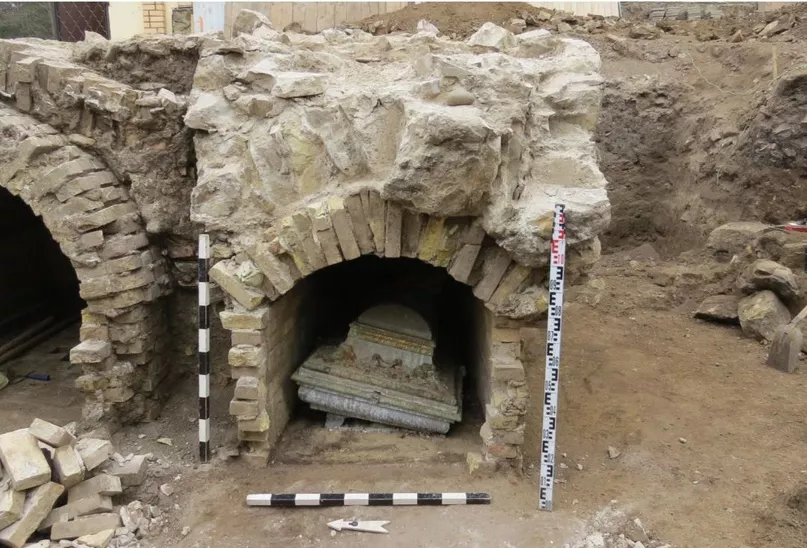 Одной из самых интересных находок 2023 года стало открытие участка турецкого некрополя конца XVIII – начала XIX веков, а также двух кирпичных склепов, которые относились к располагавшейся рядом церкви Святого Онуфрия Великого. Один из склепов был разграблен при строительных работах в середине XX века, во втором находилось непотревоженное погребение священнослужителя.