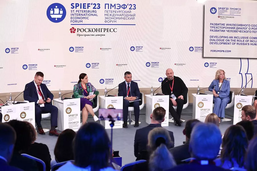 В рамках ПМЭФ-2023 прошла тематическая сессия «Развитие инклюзивного сообщества: трехсторонний диалог о роли инклюзии в развитии человеческого потенциала России». В ней приняли участие первый заместитель министра просвещения РФ Александр Бугаев, замминистра экономического развития РФ Татьяна Илюшникова, вице-губернатор Краснодарского края Александр Руппель, актер театра и кино, учредитель Фонда поддержки инвалидов «Жизнь с ДЦП» Гоша Куценко, директор дивизиона «Качество жизни» АСИ Александр Пироженко, представители бизнеса и общественных организаций.