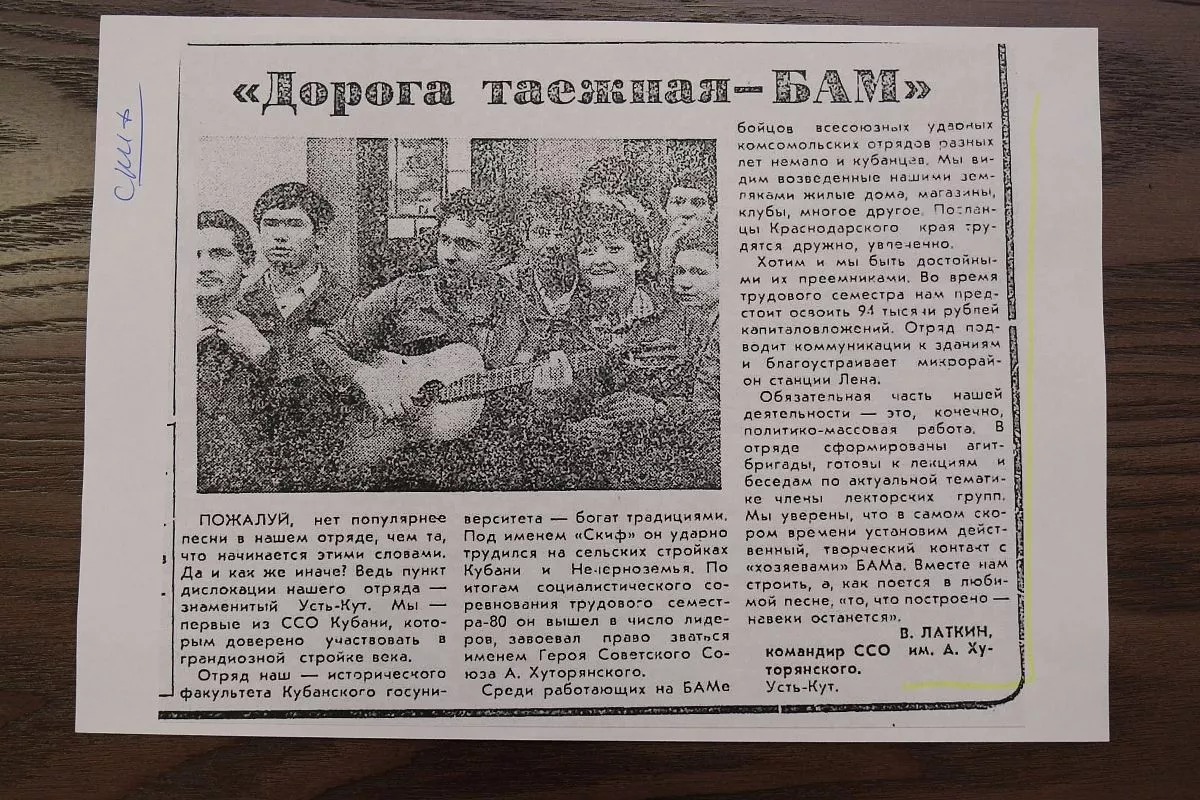 В Краснодарской краевой универсальной научной библиотеке имени Александра Пушкина подняли подшивки краевых газет 1970–1980-х, нашли 150 материалов о БАМе и бамовцах. В одной из статей я нашел фамилию передовика-бамовца из Славянского района Петра Чуприны. Он и его земляк Г. Пушкарь отправились на БАМ прямо с 17-го съезда комсомола в составе всесоюзного ударного отряда. Этот факт позволил найти еще нескольких героев.