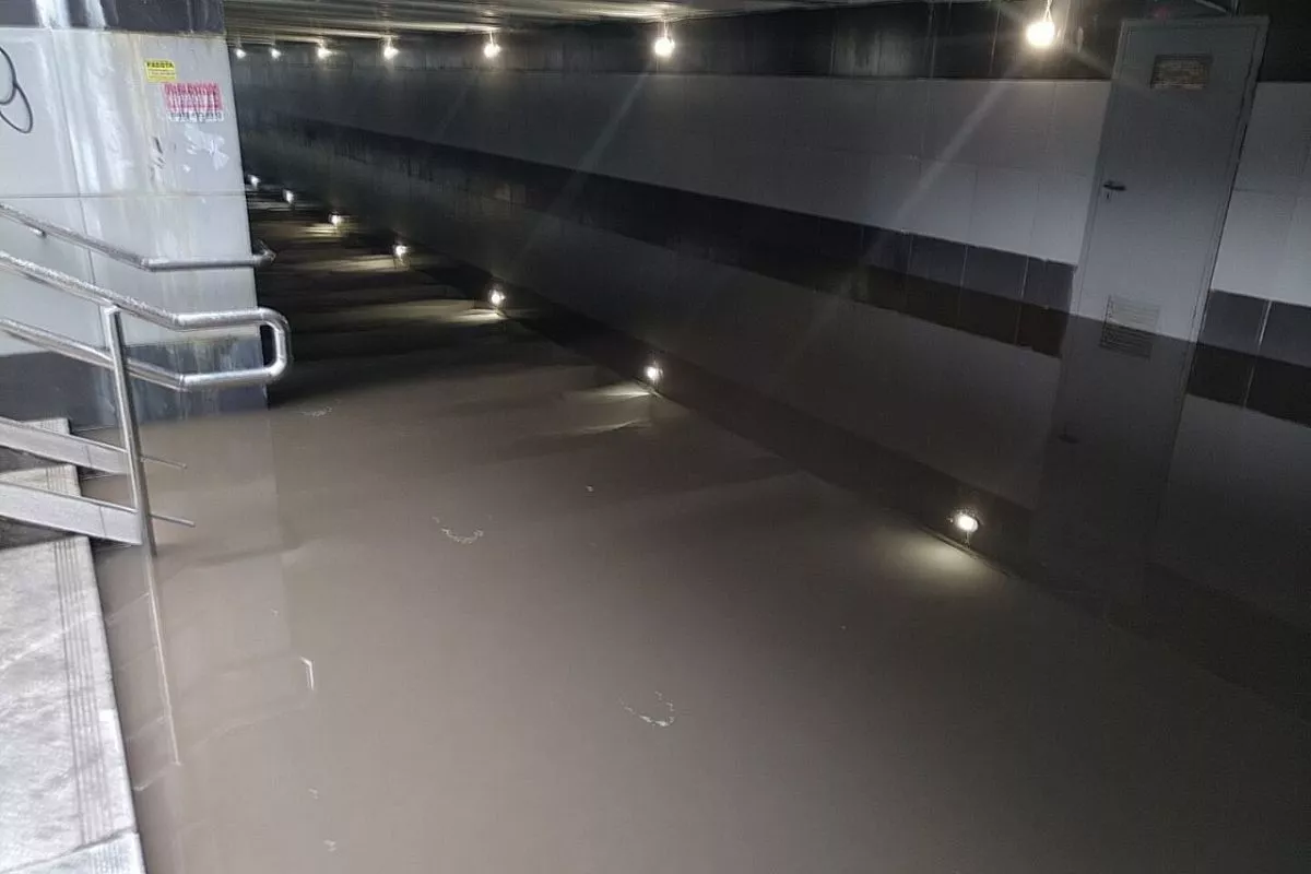 Подземный переход в районе стадиона «Кубань» тоже ушел под воду.