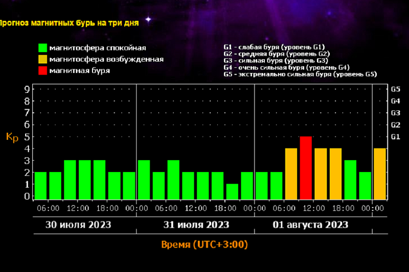 Всего в классификации магнитных бурь пять уровней - от G1 до G5. Считается, что слабая буря может спровоцировать незначительные сбои в работе энергосистем, а также повлиять на пути миграций птиц и животных. Сильные бури вызывают нарушения коротковолновой связи и работы навигационных систем, а также сбои напряжения в промышленных сетях.