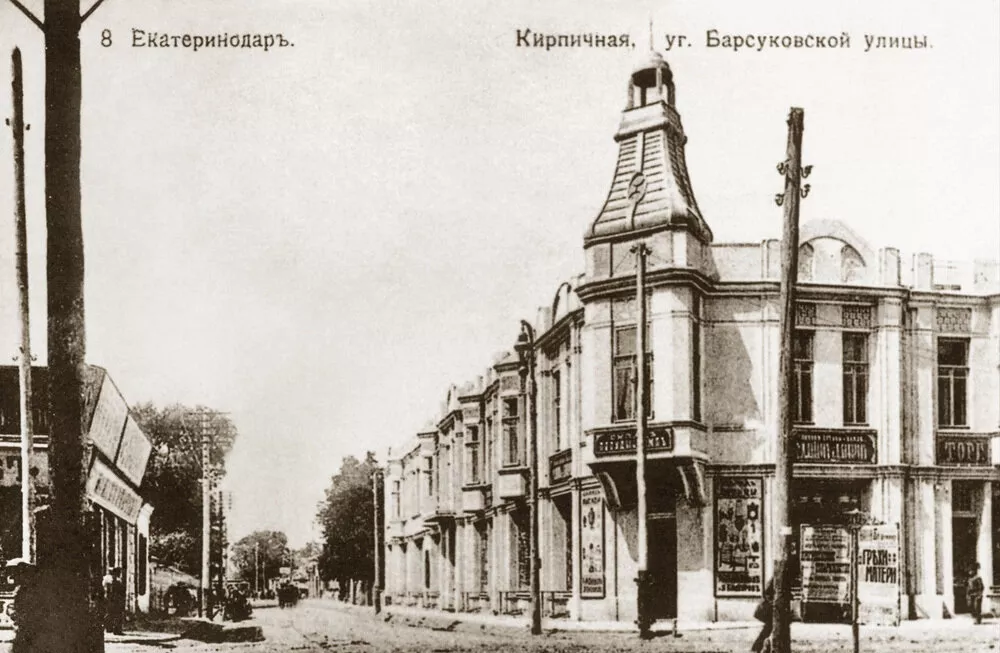 Автор проекта здания — знаменитый кубанский архитектор Александр Козлов. Сначала здесь располагался доходный дом екатеринодарского врача Степана Михалева. На первом этаже - магазины готовой одежды и мануфактуры, а также отделение Российско-Американской резиновой мануфактуры, в котором немногочисленные автомобилисты того времени приобретали шины.