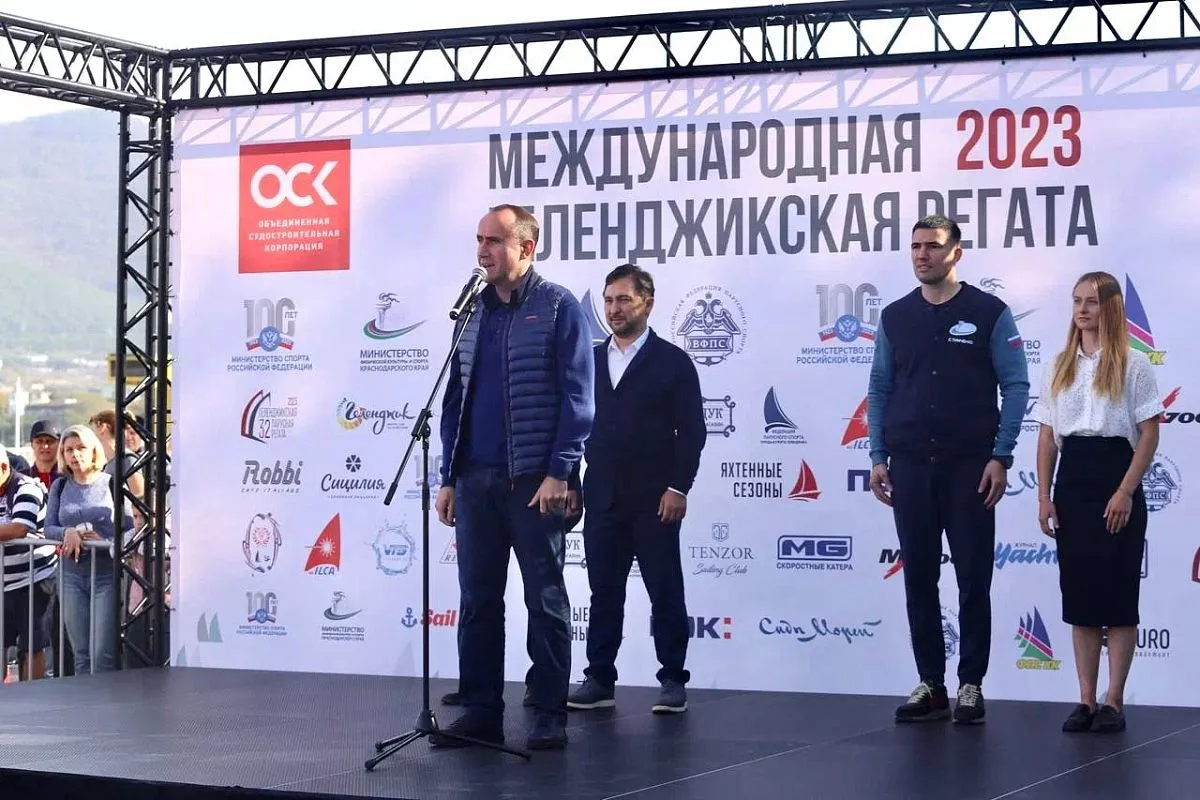 Глава города-курорта Геленджика Алексей Богодистов вместе с министром спорта Краснодарского края Серафимом Тимченко поприветствовали спортсменов.