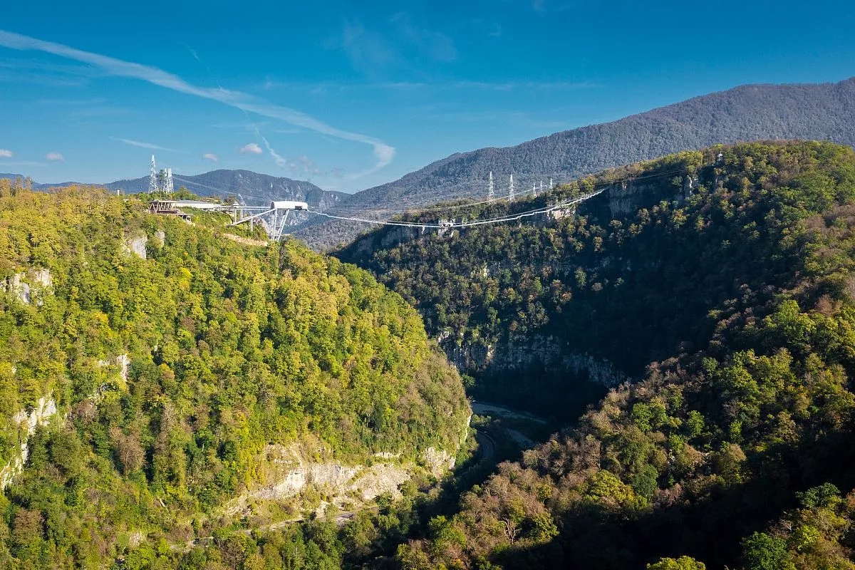 Skypark – уникальное место в Ахштырском ущелье Сочинского национального парка. Благодаря труду и смелости создателей в этой природной локации создана достопримечательность, про многие аттракционы которой можно сказать, что они самые-самые. Именно здесь расположены самые высокие в мире качели. Здесь можно прыгнуть вниз с самой высокой в России банджи-площадки – 207 метров и 7 секунд чистого удовольствия ждут смелых туристов. Кроме того, здесь расположен мост, который входит в топ-13 самых впечатляющих мира по версии CNN.