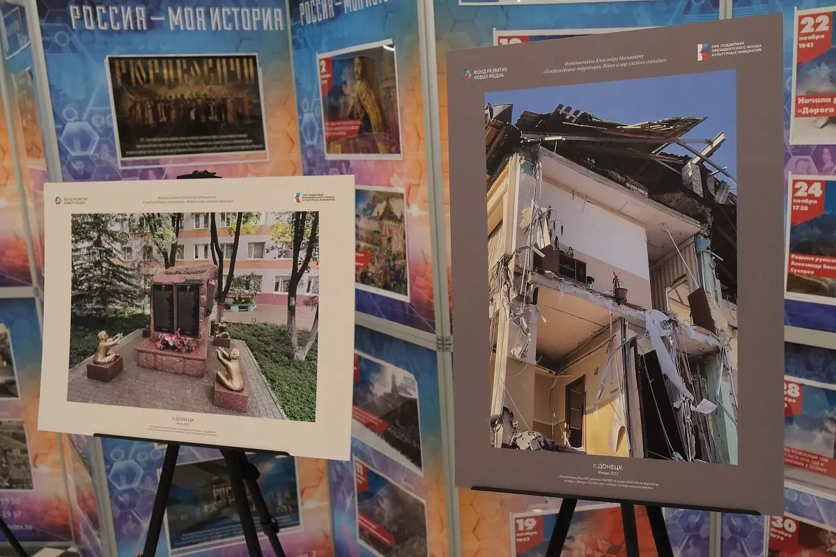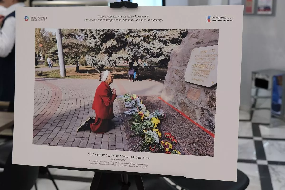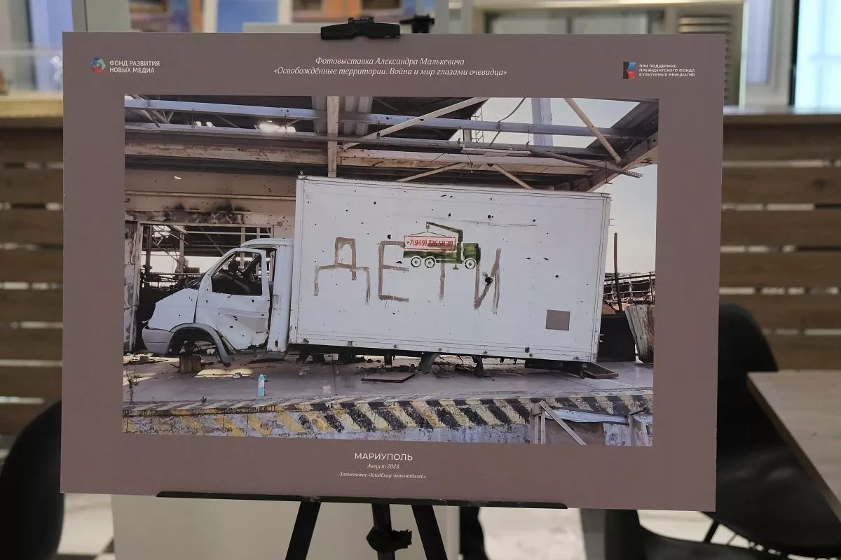 Александр Малькевич, как он сам признался, не является профессиональным фотографом. Большинство представленных на выставке работ он снимал на сотовый телефон. Побывал он во многих горячих точках на передовой – в Донецке, Мариуполе, Луганске, Мелитополе, Херсоне, Бердянске… Найдется немного российских журналистов и общественных деятелей, кто проехал по всем местам специальной военной операции. Александр – один из них.