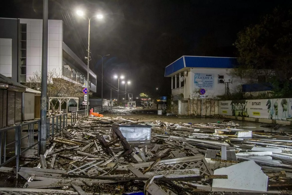 В Широкой Балке подтопило дорогу, на проезжую часть вынесло конструкции с пляжа. Въезд сюда временно затруднен. Проезд авомобилей от пансионата «Голубая волна» до кафе «Беллисимо» временно невозможен.