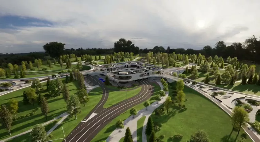 - Все начинается с «Визит-центра». Это гармонизация энергии технологического гостеприимства. Он включает приветственную зону, туристический автовокзал, а также перрон легкого метро, крытые стоянка авто- и велотранспорта, площадки для вертолетов и дронов, кафе и торговые точки, - говорится в ролике.