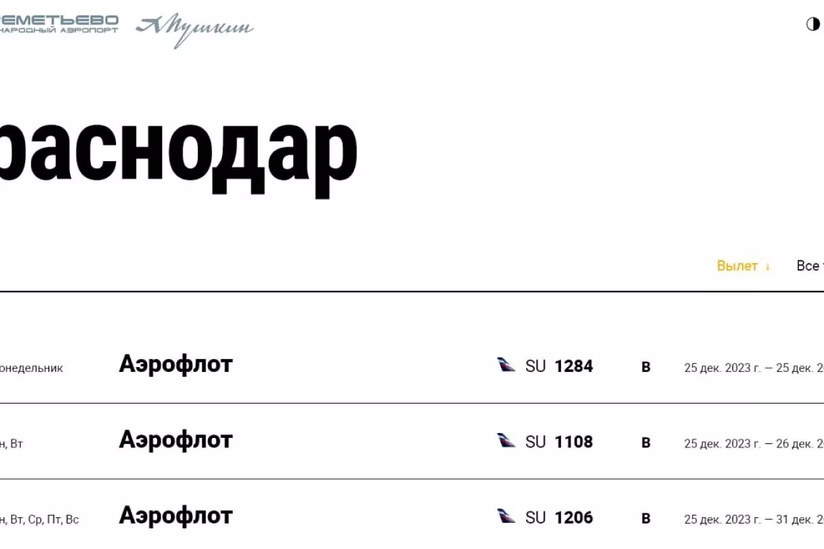 На сайте столичного аэропорта Шереметьево опубликована информация о вылетах, запланированных в аэропорт Краснодара. Первый рейс - SU 1284 «Аэрофлот» - намечен в ночь на 25 декабря. Обозначено время - 03.05. Следующий вылет в 08.40 - SU 1108 - также «Аэрофлота». График расписан до 30 марта. Официально продажу билетов не объявляли. Нет пока информации и об открытии аэропорта кубанской столицы.