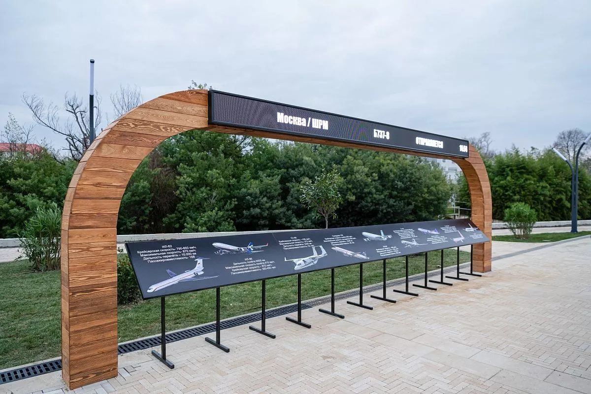 - Один из маршрутов их посадки и взлета проходит прямо над жилой зоной федеральной территории. Мы решили использовать эту особенность при создании новой пешеходной зоны: оформили удобную зону для наблюдения за лайнерами и установили табло с информацией о том, что за рейс к нам прилетает и откуда. Такого нет нигде в России, – отметил Дмитрий Плишкин.