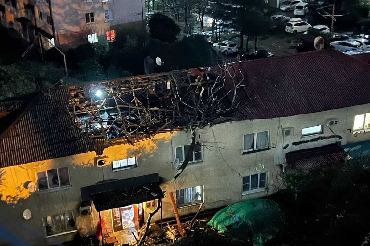 В Дагомысе на улице Армвирской, 74 на припаркованные автомобили прилетела крыша с соседней пятиэтажки.