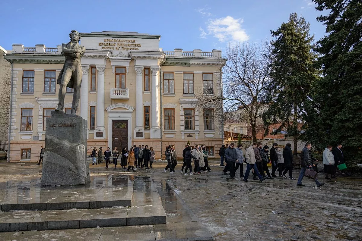 Школьники прослушали увлекательные истории о Краснодарской краевой научной библиотеке им. А. Пушкина, а также бывшем доме наказного атамана Кубанского казачьего войска, построенном в 1894 году, на месте которого сейчас находится лицей № 48.