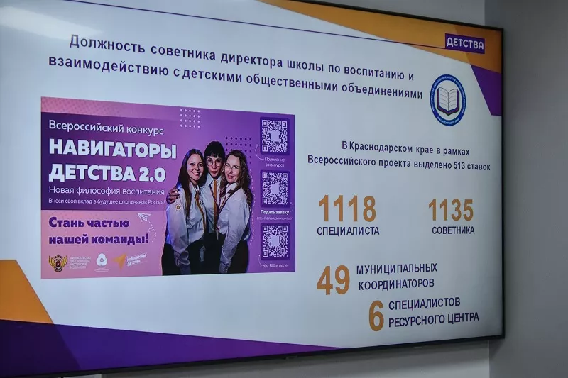 С сентября 2022 года в Краснодарском крае реализуется федеральный проект «Навигаторы детства». Это часть реализации национального проекта «Образование». В его рамках в образовательных учреждениях введена новая должность советника директора по воспитанию и взаимодействию с детскими общественными объединениями. С информацией о том, в чем суть их работы, какие проводятся мероприятия и каковы первые результаты и планы всероссийской программы рассказали участники пресс-конференции, состоявшейся в министерстве образования, науки и молодежной политики Краснодарского края.