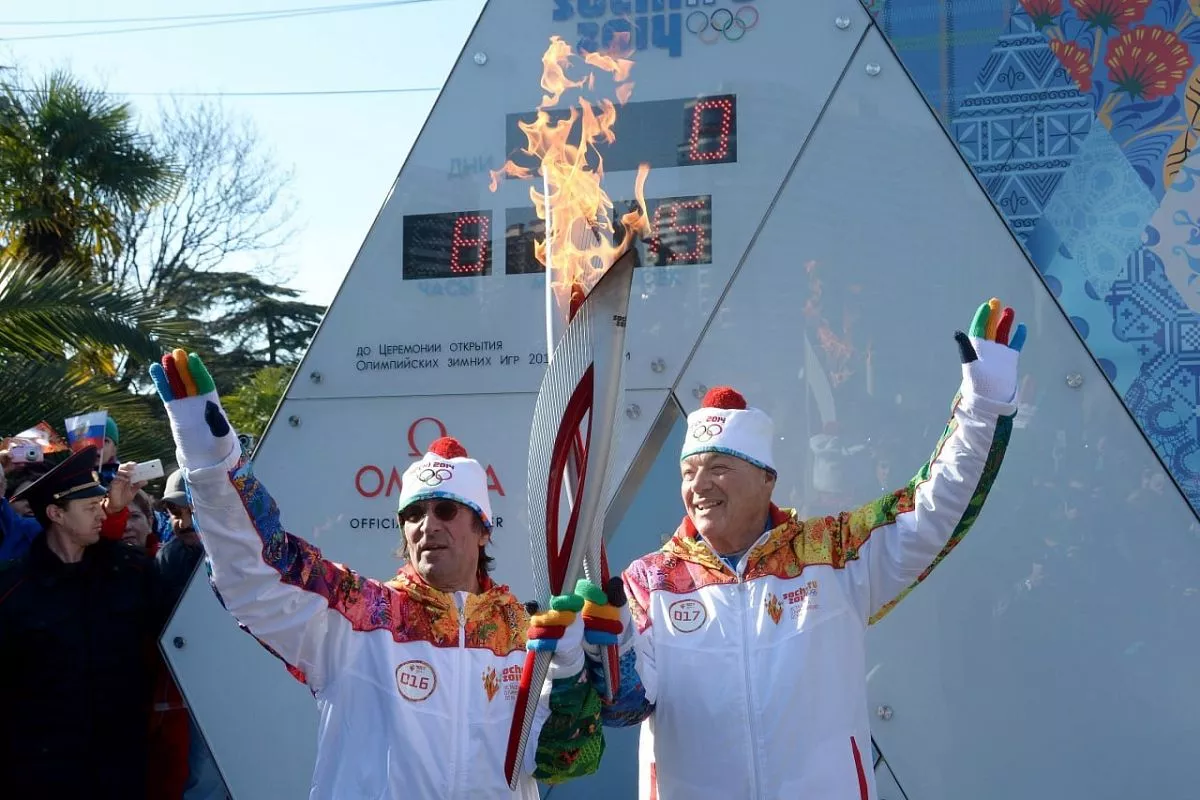 Эстафета огня, журналист и телеведущий Владимир Познер и альтист, народный артист СССР Юрий Башмет. 2014 г.