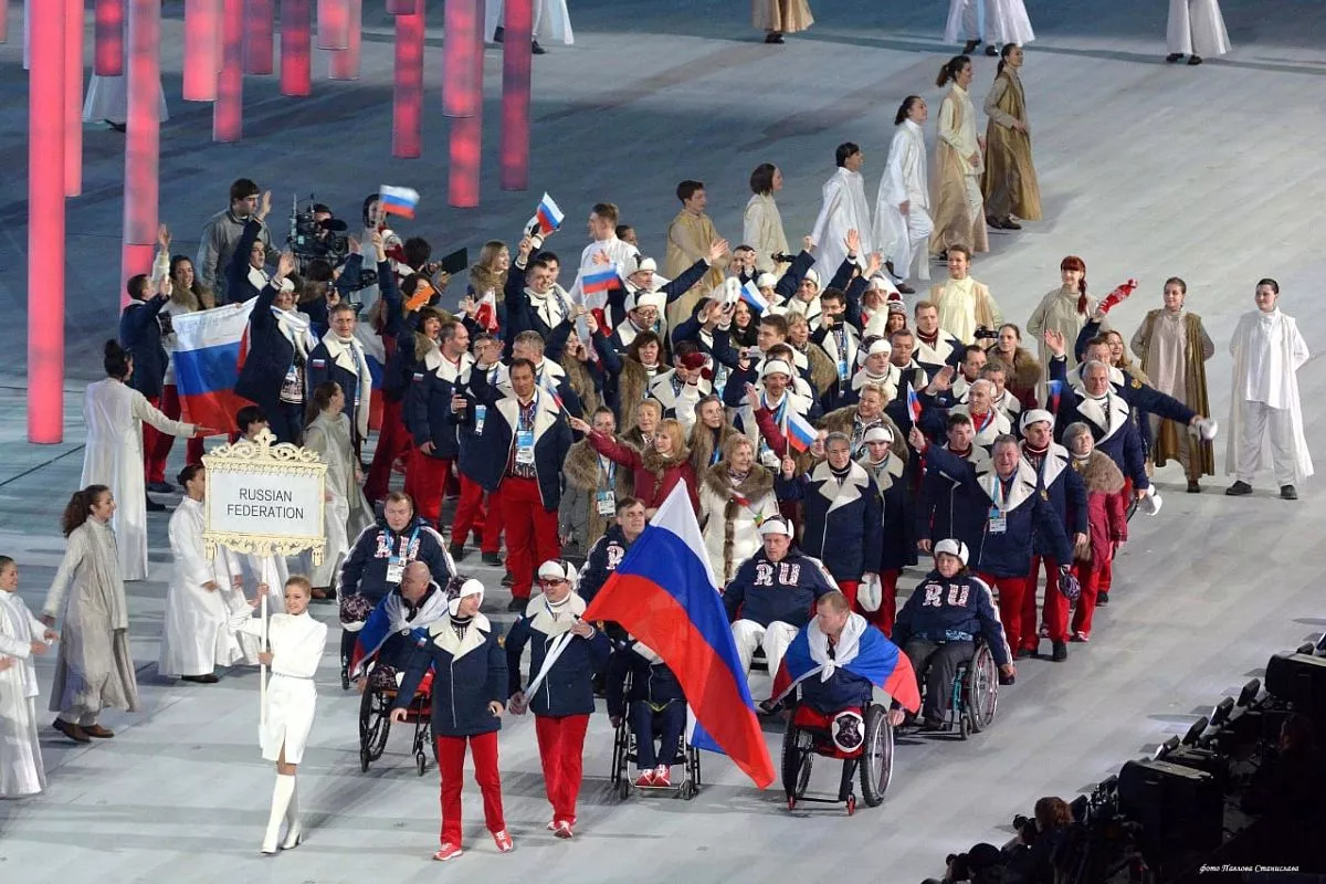 6 – Российская сборная на церемонии открытия Паралимпийских игр на стадионе «Фишт». 2014 г.