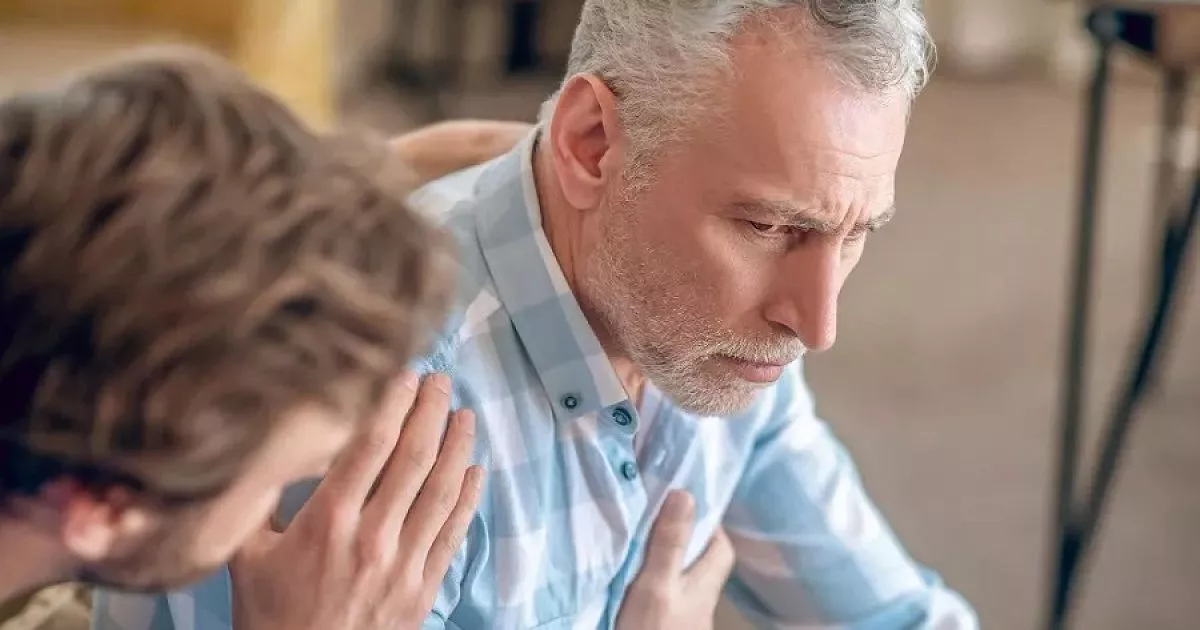 Боль в груди, которая может отдавать в руку, лопатку, плечо, челюсть, кашель, головокружение, одышка, бледность с сероватым оттенком, паника, холодный пот на лице, неритмичный или медленный пульс. Это первые признаки инфаркта миокарда.
