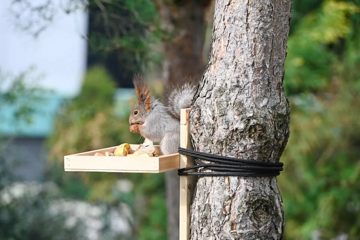 В Японском саду обживаются 12 белок – их выпустили накануне, подготовив все необходимое. На деревьях для них заранее установили домики и кормушки.