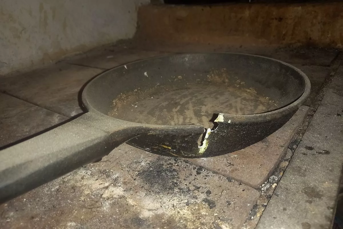 В комнате, где стоит печь, мне показывают чугунную сковородку, которую как будто надорвали сбоку.
