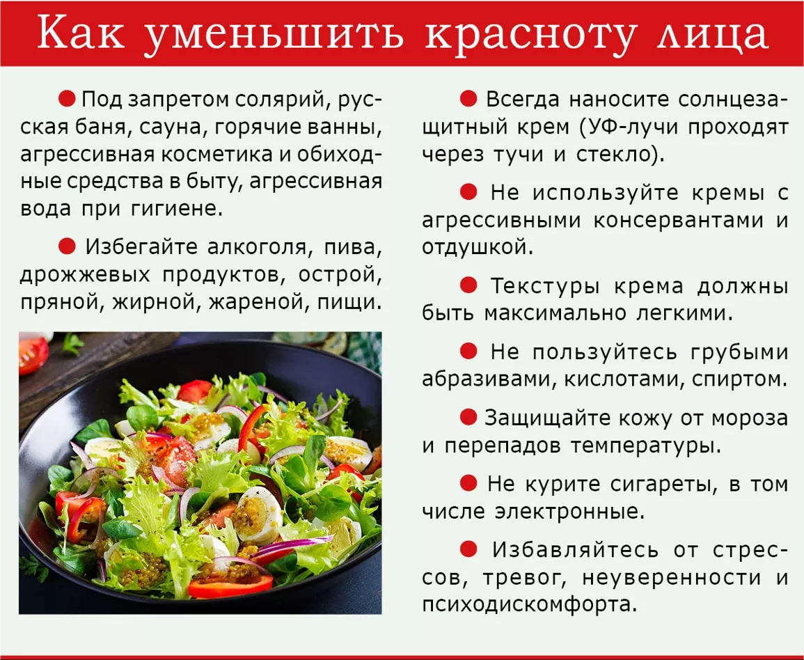 – Да, диета – это действенный способ уменьшить проблемность кожи. При этом немаловажное значение имеет сочетание сбалансированного питания с наружным лечением розацеа. Большую роль играет уход по рекомендациям и под наблюдением дерматолога.