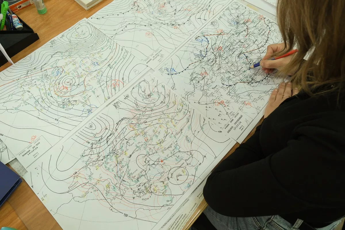 Экскурсию по Краснодарскому центру, который располагается на девятом этаже здания в центре Краснодара, провела заместитель руководителя Светлана Попова. Самый многочисленный – отдел синоптиков – это сердце службы. Здесь несколько больших мониторов, на которые в режиме реального времени поступает информация с метеостанций, спутников и радара – он находится в районе аэропорта. Специалисты анализируют данные, работают с многочисленными картами. К слову, жизнь здесь кипит всегда, даже ночью. Предусмотрена система суточных дежурств.
