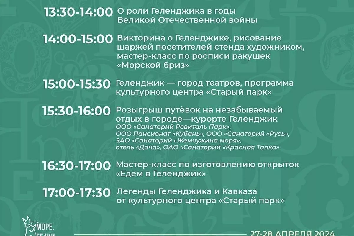 Ждем вас в павильоне № 75 на ВДНХ в ближайшие выходные. Проведите их с Геленджиком – интересно и полезно! Все подробности – в афише.