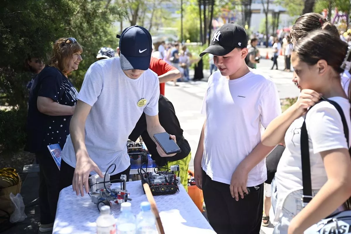 Собственно, здесь, в парковой аллее, дети могли попробовать управлять реальными беспилотниками. Ребятам рассказали и показали, как собираются дроны, какой вес они могут переносить на себе, от каких комплектующих зависит дальность полета и стоимость беспилотников в целом.