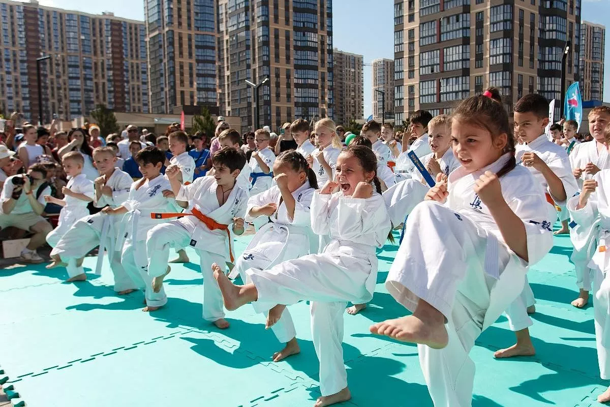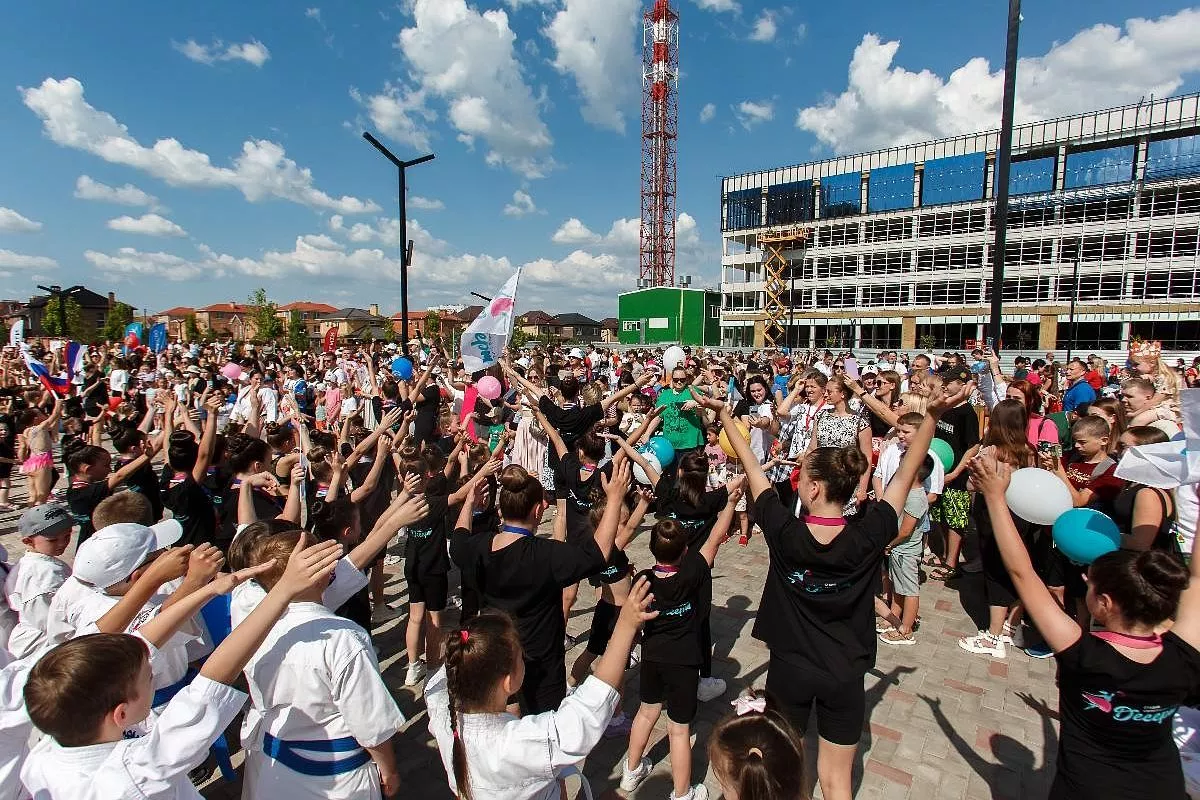 После этого торжественного шествия гости праздника увидели яркий флешмоб, показательные выступления юных спортсменов по художественной гимнастике, карате и потрясающие танцевальные номера.
