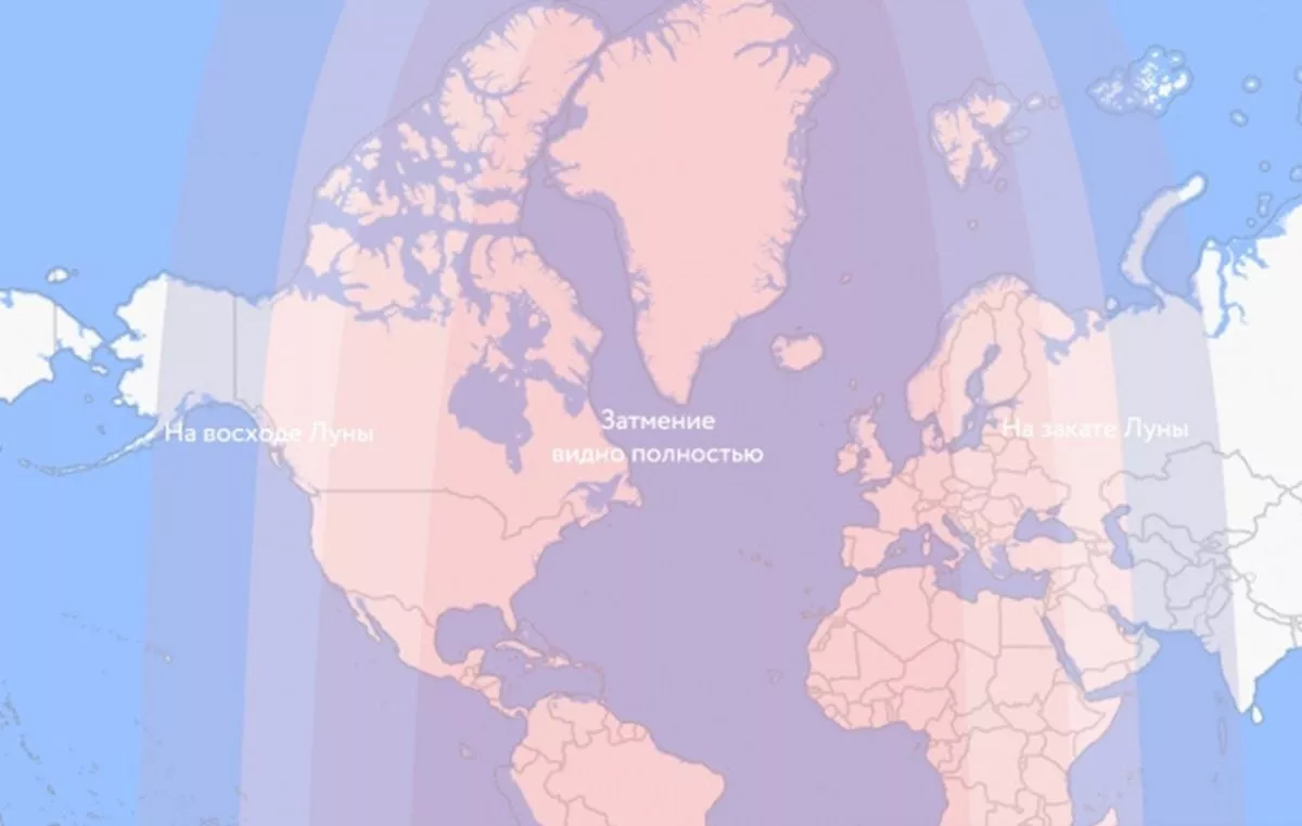 Уточняется, что затмение Луны можно будет наблюдать в Европе, большей части Азии, Африке, Северной Америке, Южной Америке, акватории Тихого, Атлантического и Индийского океанов, Арктике, Антарктиде. В России астрономическое явление будет доступно в Западной Сибири и на Европейской части страны.