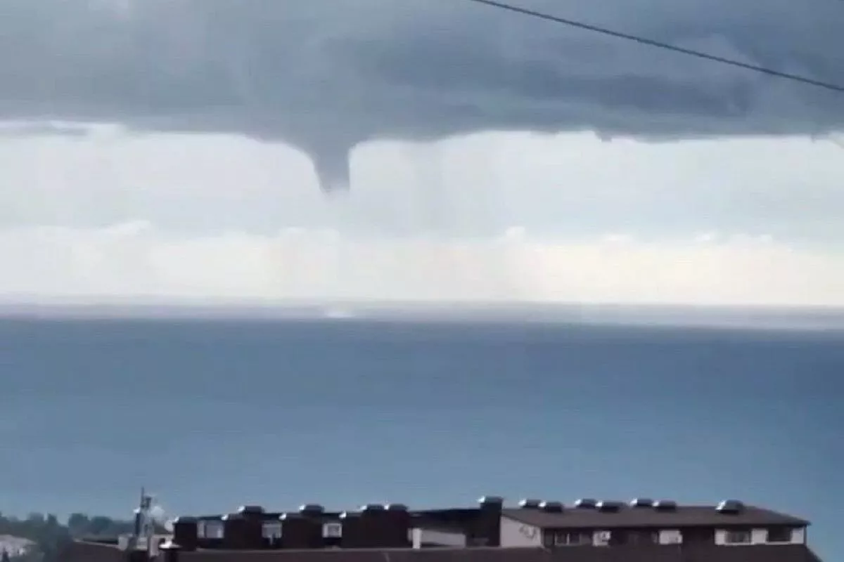 Также сегодня днем над морем жители запечатлели мощный смерч.