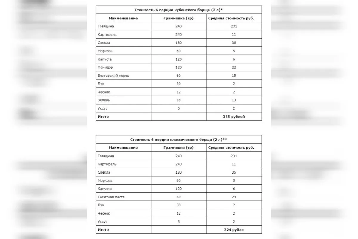 Стало известно, во сколько обойдется борщ краснодарской семье