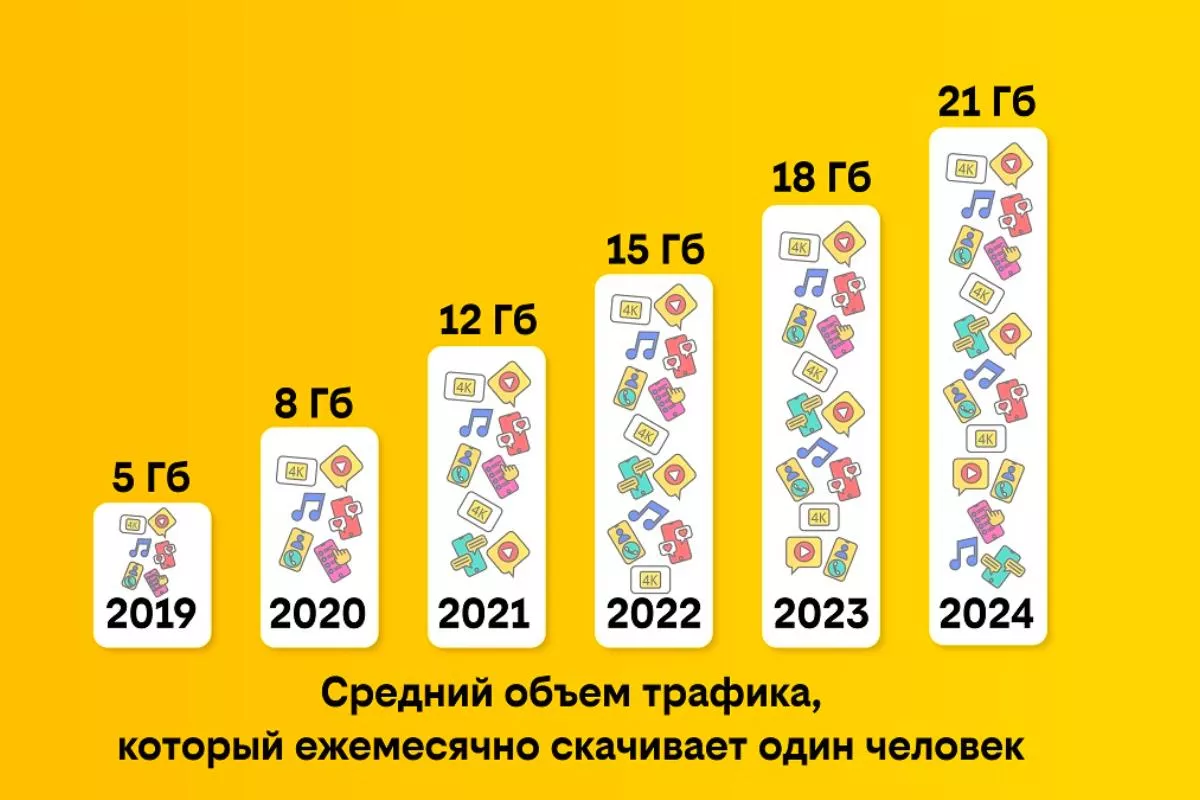 По данным билайн, за последние шесть лет интернет-трафик в мессенджерах вырос в 39 раз. Пользователи стали смотреть и отправлять больше видео, фото, голосовых сообщений. Также выросло использование и других сервисов.