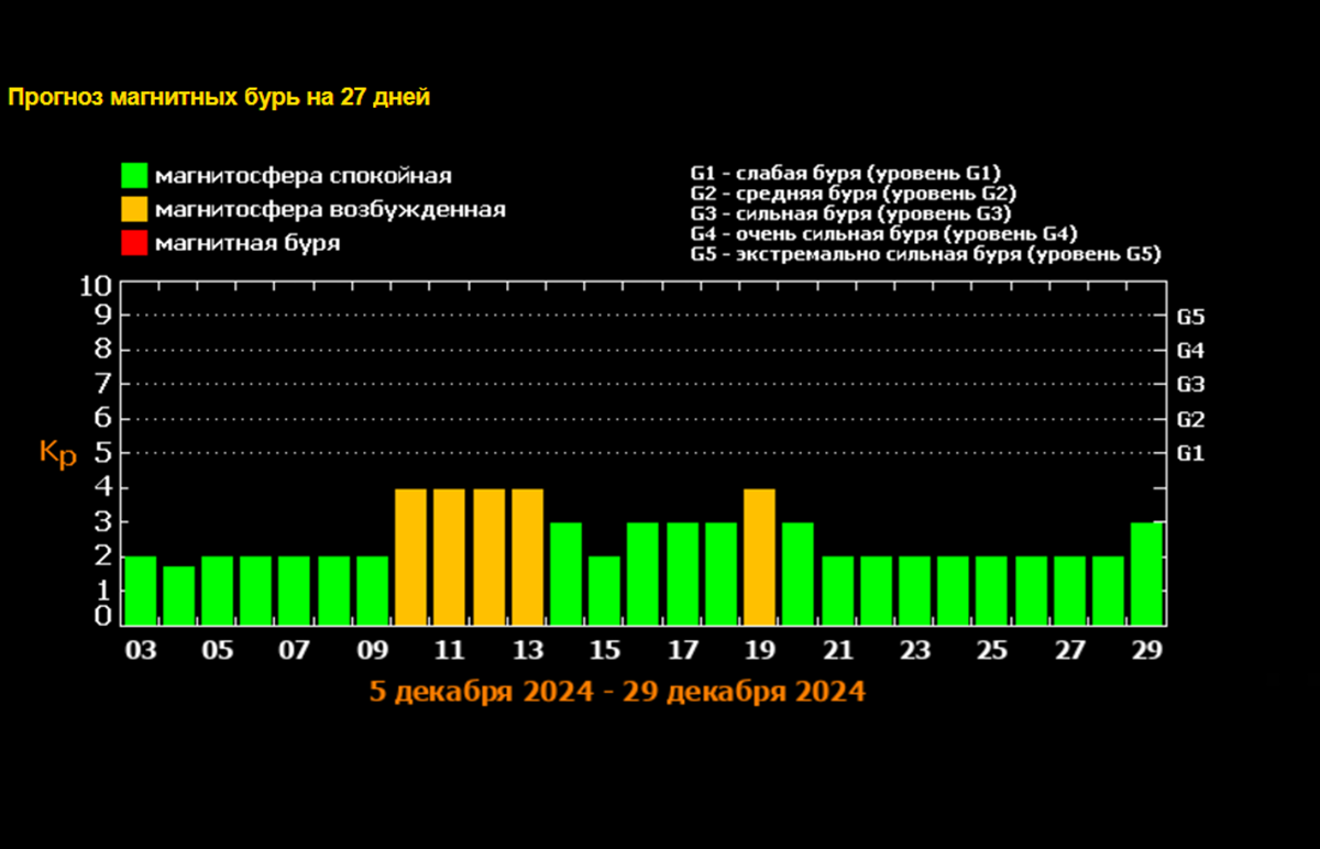 Мощные удары в долгосрочном прогнозе не предвидятся, но вероятность внезапных магнитных бурь не исключена.