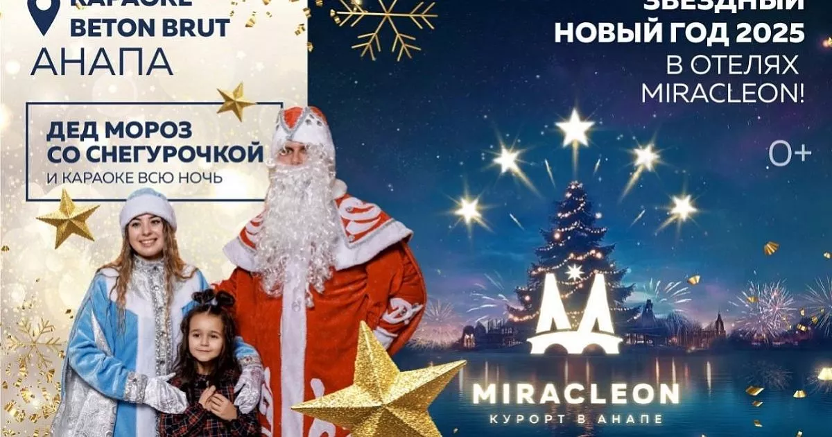 Хотите испытать незабываемые эмоции, исполнить популярные хиты и стать звездой хотя бы на одну ночь? Можно забронировать проживание и банкет в Beton Brut, приехать в Анапу и провести Новый год в караоке-баре, который работает по системе «По меню». Вкусная еда, широкий выбор закусок, крепких и безалкогольных напитков на выбор.
