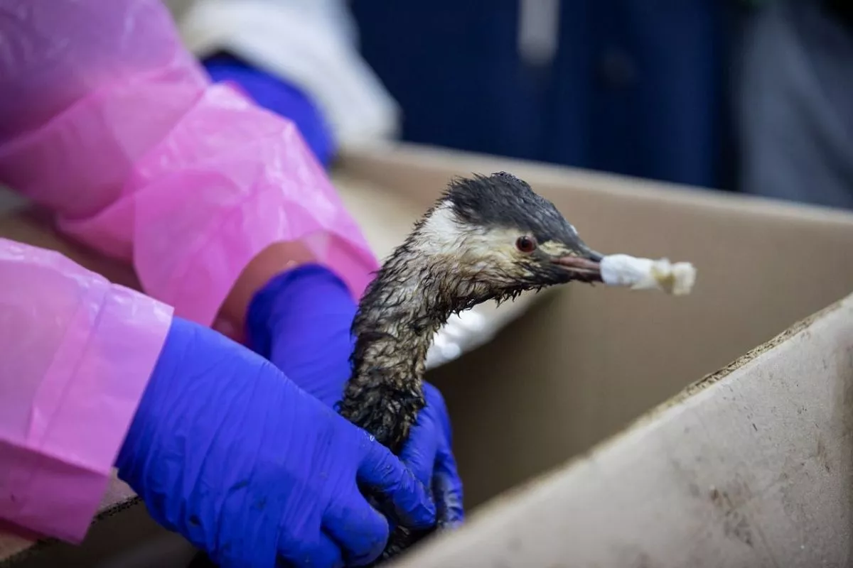Волонтеры собирают испачканных в мазуте птиц на пляжах курорта, отмывают их, лечат, кормят и отправляют на реабилитацию.